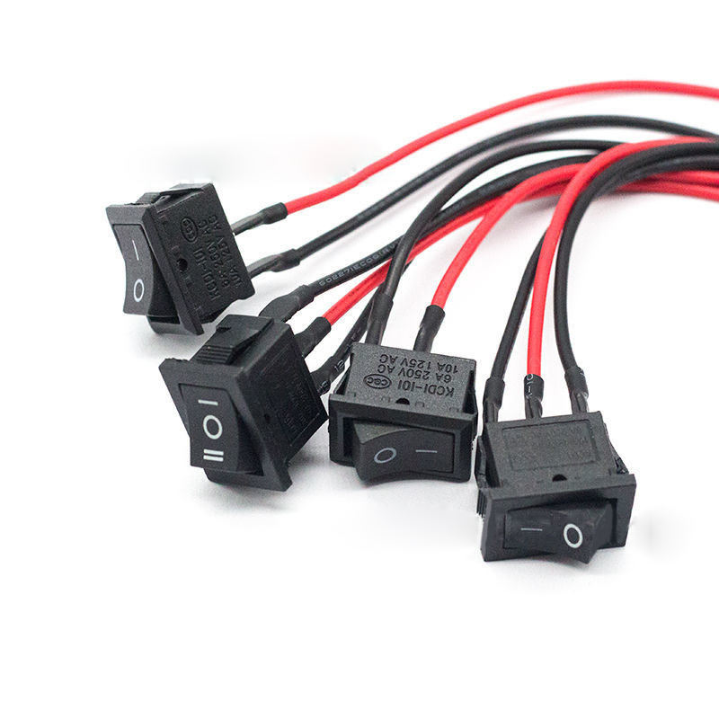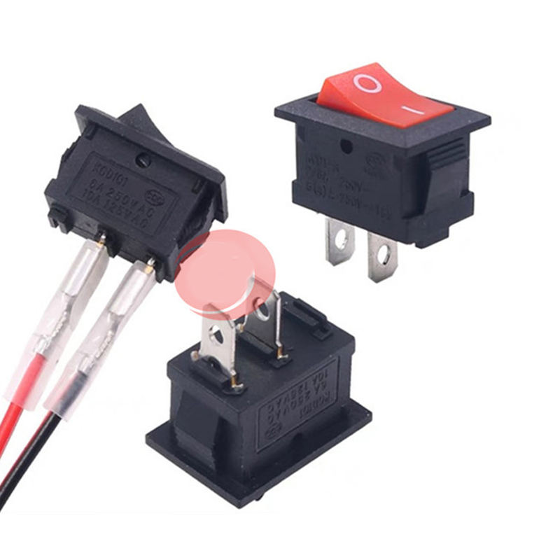 สวิตช์โยก KCD1 สำหรับเครื่องใช้ไฟฟ้าขนาดเล็ก ขนาด 21*15 มม. 2 ขา แบบเปิด-ปิด / เปิด-ปิด-เปิด 3 ขา แบบวงกลม พร้อมสายไฟ