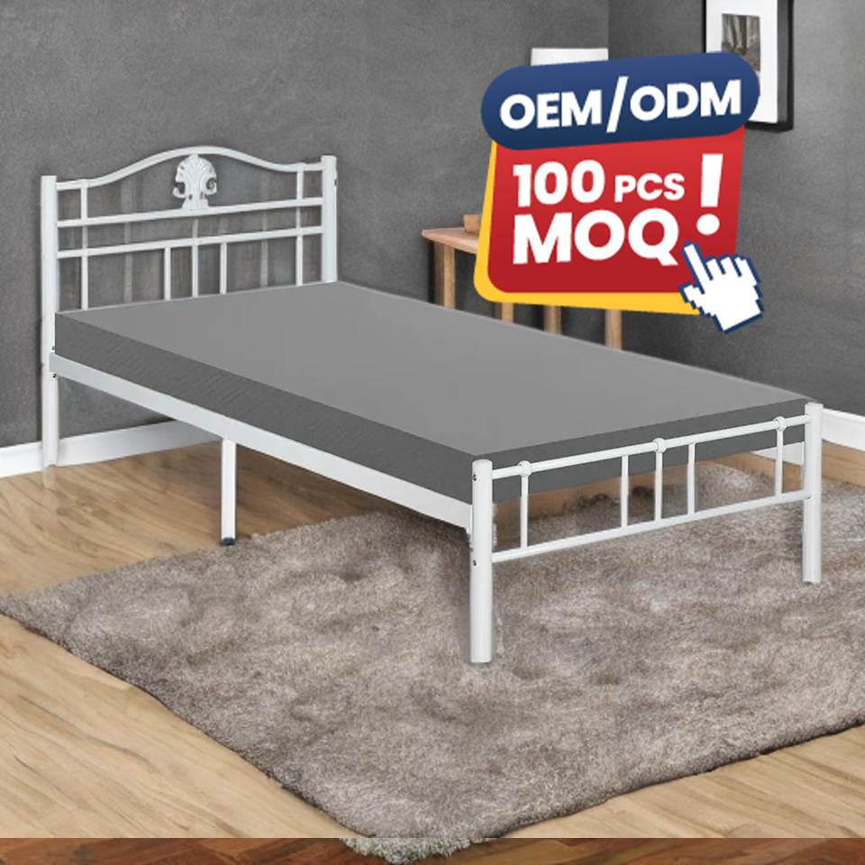 KD-1119โครงเตียงเดี่ยวสีขาวทันสมัยดีไซน์เหล็กทนทานสำหรับใช้ในห้องนอนหอพักซื้อจำนวนมาก