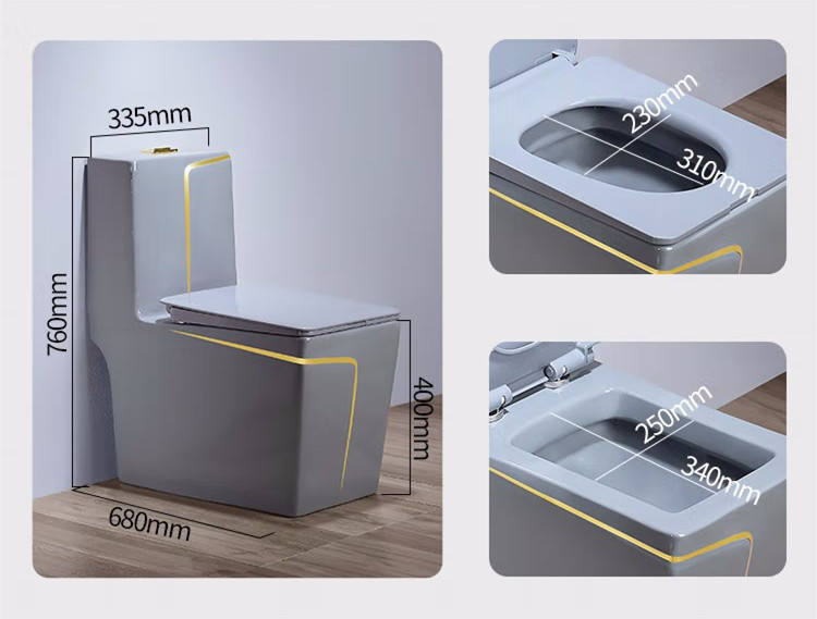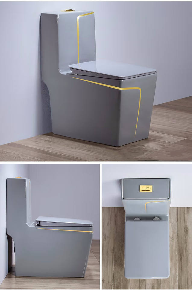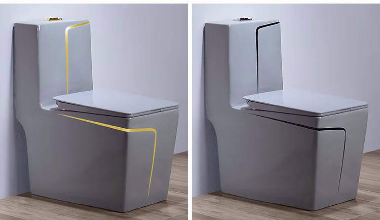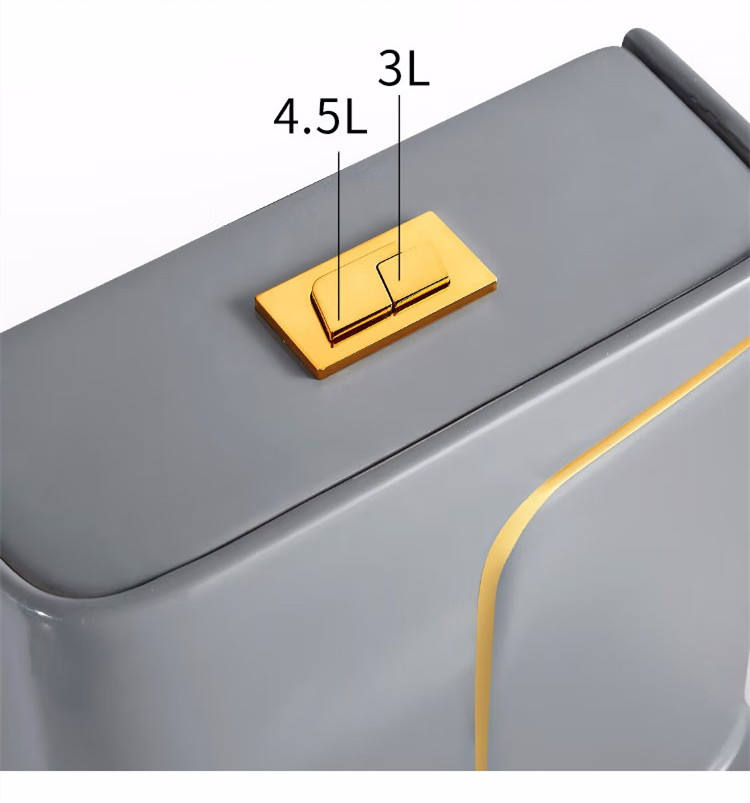 โถสุขภัณฑ์เซรามิกสีเทาแบบประหยัดน้ำ KD-19CTB ผลิตด้วยมือที่เฉาโจว สำหรับตั้งพื้น ใช้ในโรงแรม พร้อมลายเส้นสีทอง