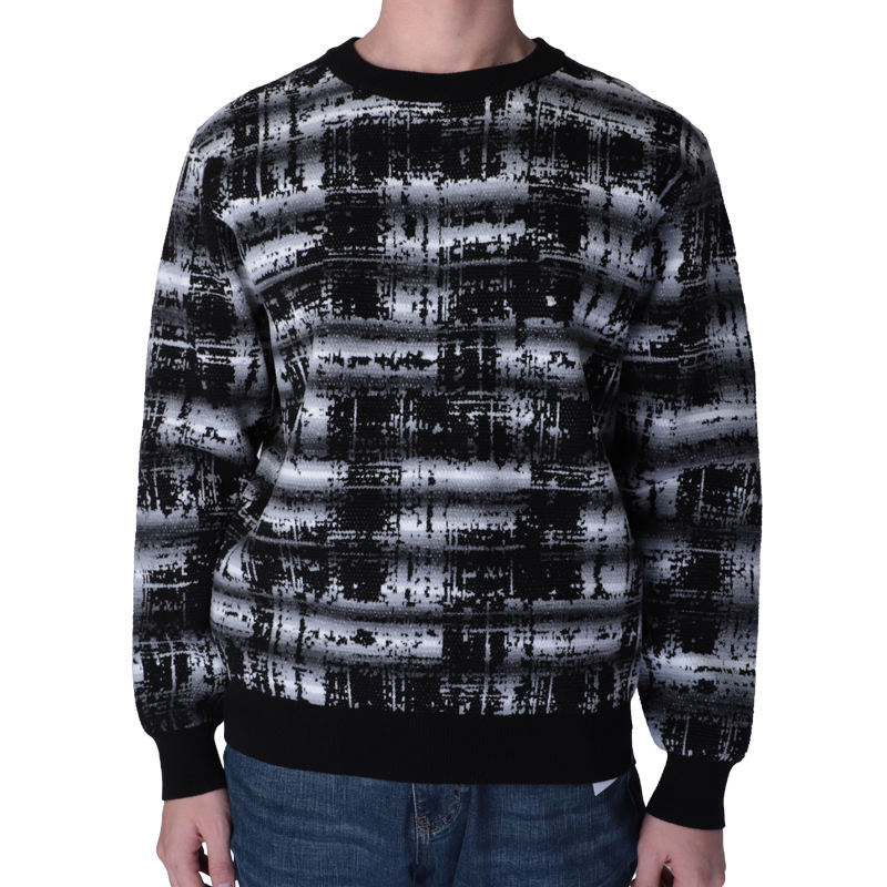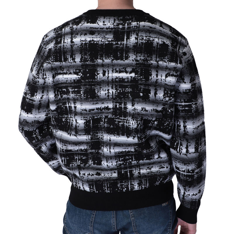เสื้อสเวตเตอร์ผู้ชาย KD เสื้อถักแบบสวมหัวคอกลมผ้าแจ็คการ์ดสีดำดีไซน์เนอร์ผ้าขนปุย