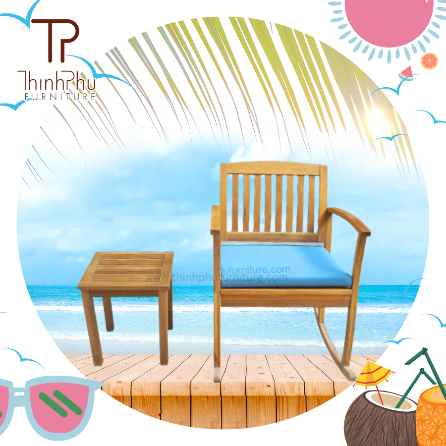 ผลิตภัณฑ์ KD เก้าอี้โยกไม้สำหรับในร่มกลางแจ้งสำหรับห้องนอนห้องนั่งเล่นสวนโรงงานเวียดนามเฟอร์นิเจอร์สำหรับโรงแรมวิลล่า