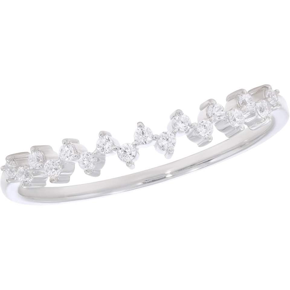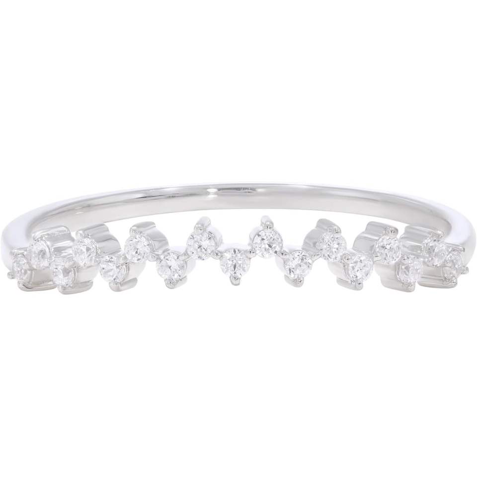 Keeva Jewels แหวนเพชรสำหรับปลูกในห้องปฏิบัติการ0.12Ct แผ่นทองขาวชุบเงินซิกแซกแบบซ้อนกันได้ขนาด6.5สี F-G กับความชัดเจน