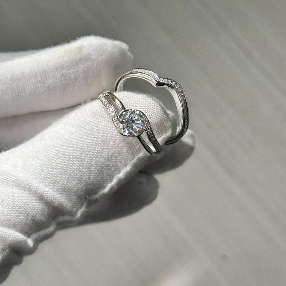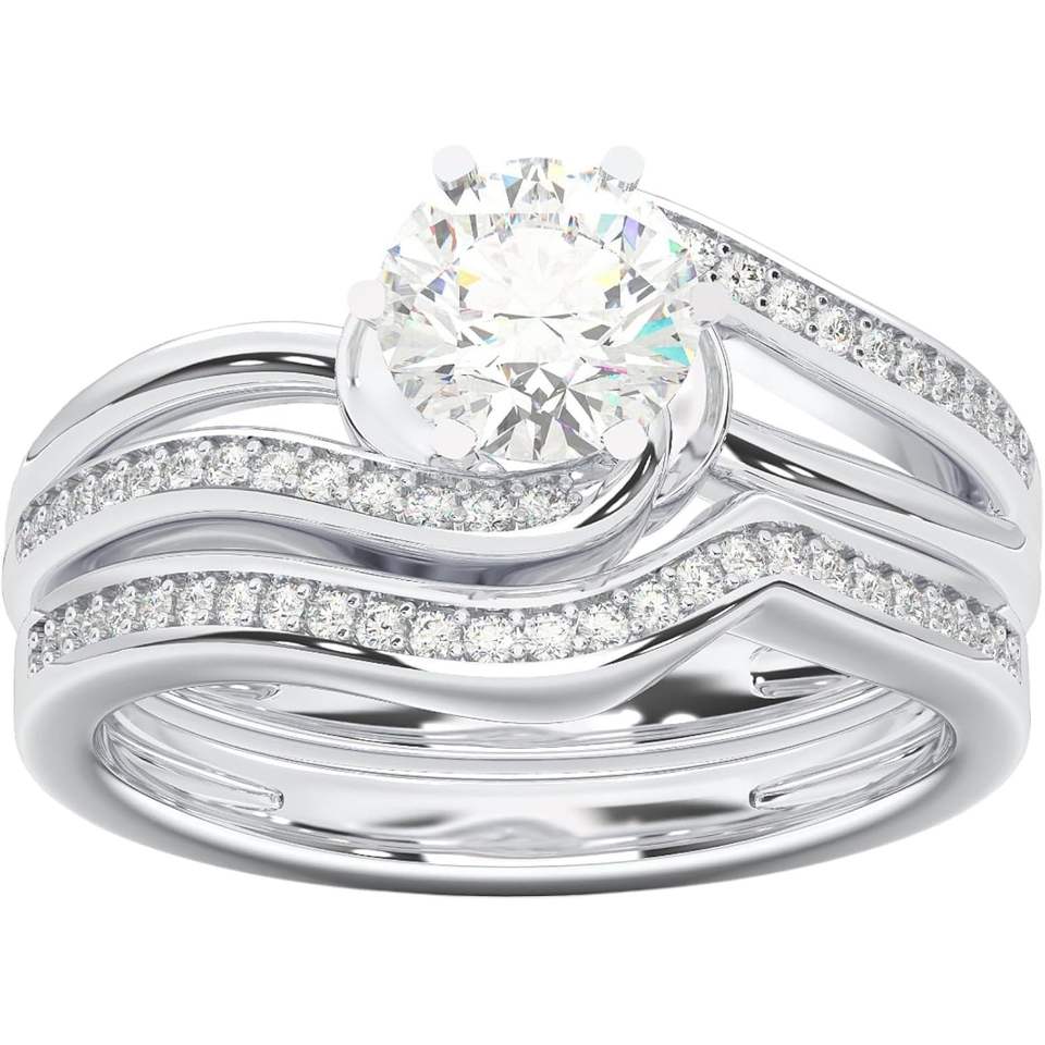 เครื่องประดับ KEEVA แหวนหมั้นเพชรเพาะเลี้ยง 1.10 กะรัต F-G/VS แพลตตินั่ม 950 พร้อมแหวนแต่งงานสำหรับผู้หญิง ไซส์ 7 ชุดเครื่องประดับชั้นดี