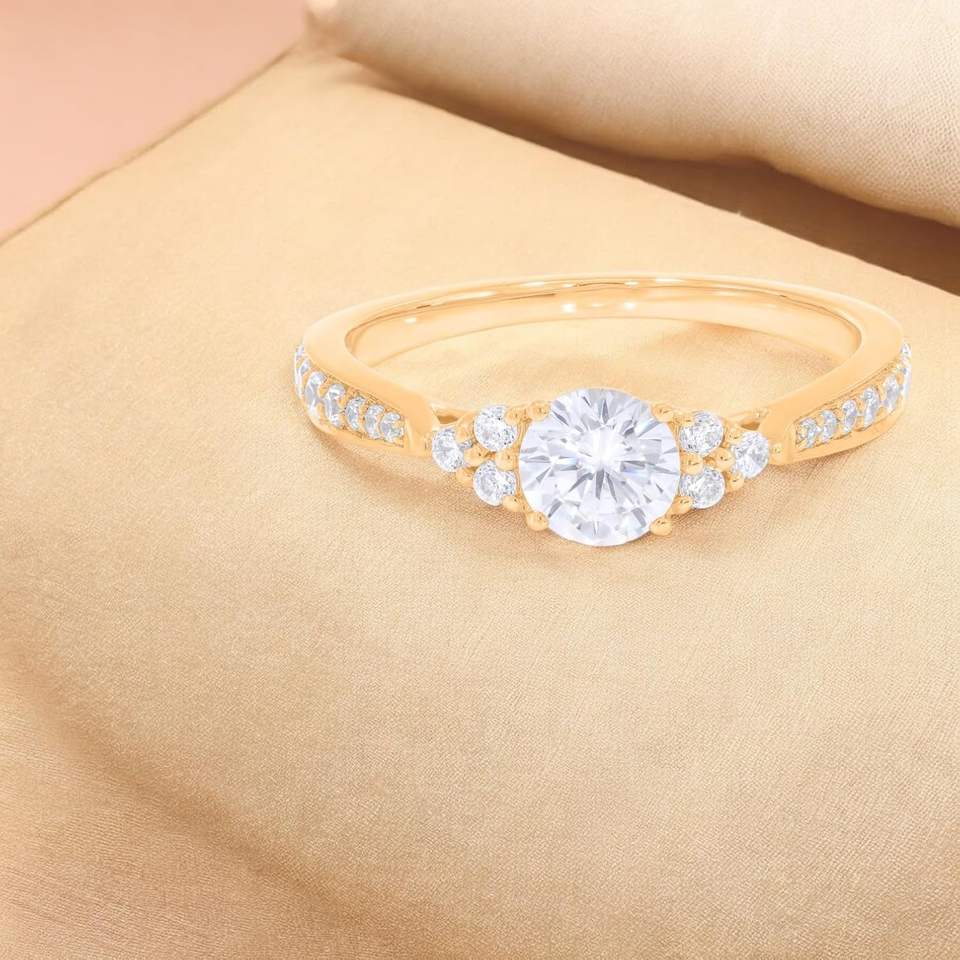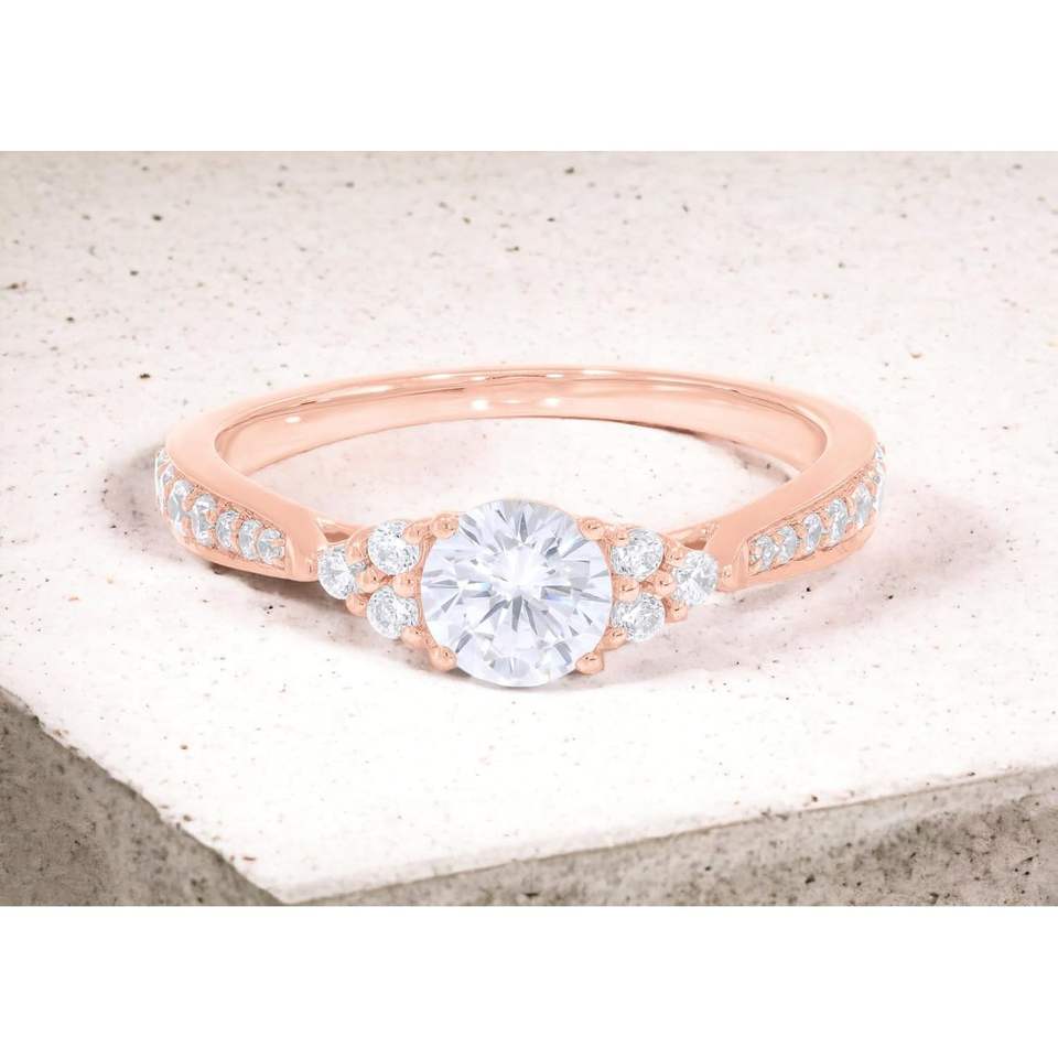 แหวนหมั้นเพชรแล็บโกรว์ 1.00 กะรัต เกรด F-G/VS สำหรับผู้หญิงจาก KEEVA JEWELS ประดับด้วยเพชร 21 เม็ด ฝังแบบ Prong Set ทำด้วยมือจากทองคำแท้ ดีไซน์เนอร์