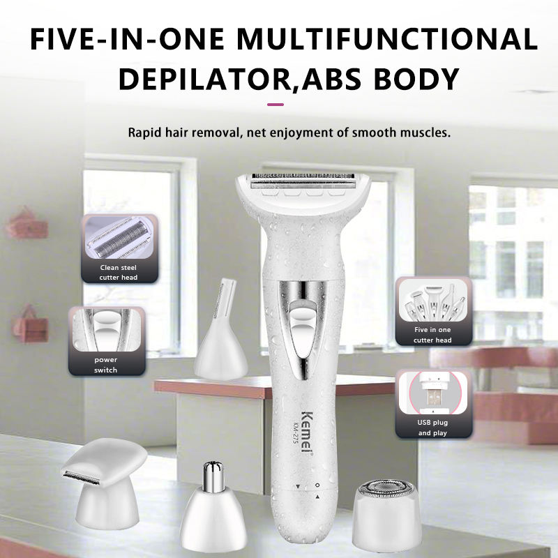 Kemei เครื่องโกนหนวดไฟฟ้า Km-275สำหรับผู้หญิง, เครื่องเล็มคิ้วบิกินี่สำหรับกำจัดขนตามร่างกายใบหน้าสำหรับใช้ในครัวเรือนรถยนต์ RV