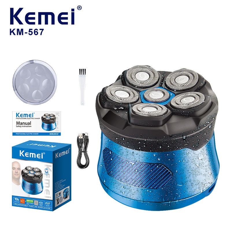 เครื่องโกนหนวด KEMEI รุ่น Km-567 แบตเตอรี่ลิเธียม 1400mAh ความเร็ว 3000 รอบต่อนาที ใบมีด 6 แบบ 3 มิติ สำหรับตัดผมผู้ชาย เครื่องโกนผมหัวล้าน IPX7 ขายส่ง