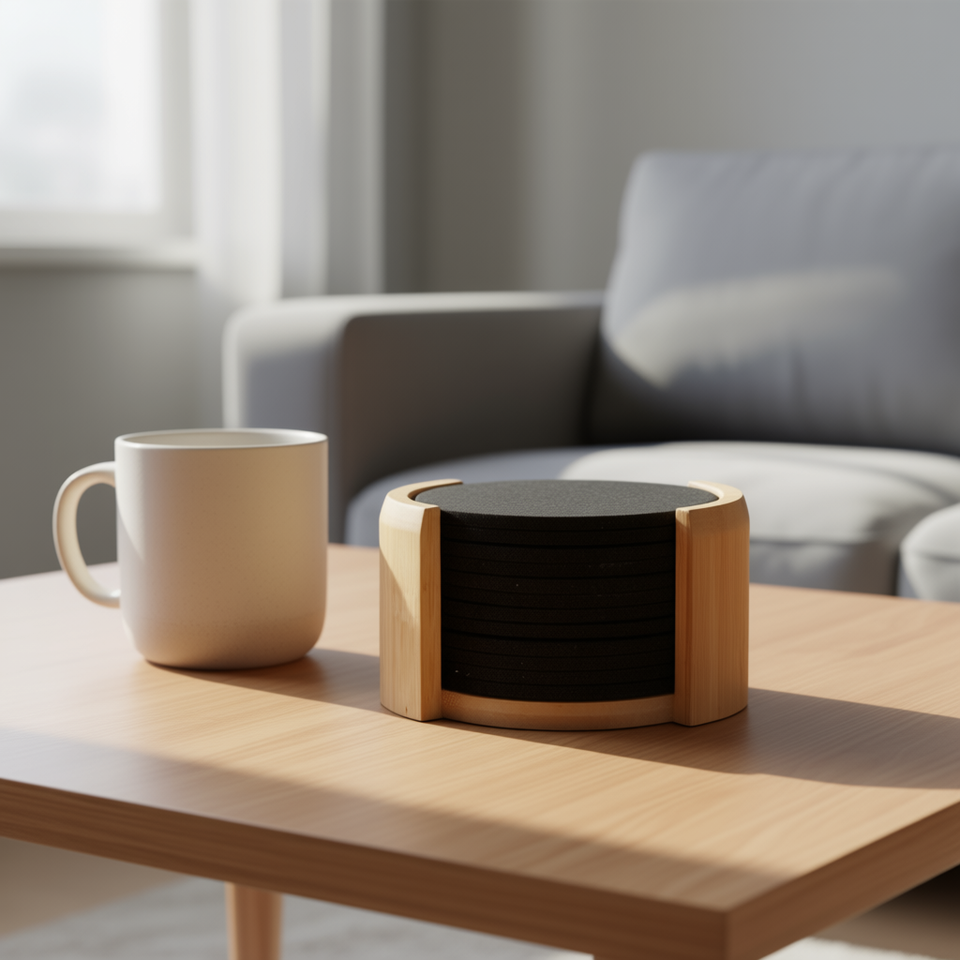 แผ่นรองแก้วไม้ไผ่แบบมินิมอล KESPER ใช้ซ้ำได้ แพ็ค 12 ชิ้น อุปกรณ์เสริมสำหรับเครื่องดื่ม