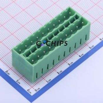 KF2EDGKVCH-5.0-2*10P Plug-in Terminal Block Through hole,P=5mm Connector Board-to-Board / Socket - Closed 5mm Green Straight Pin