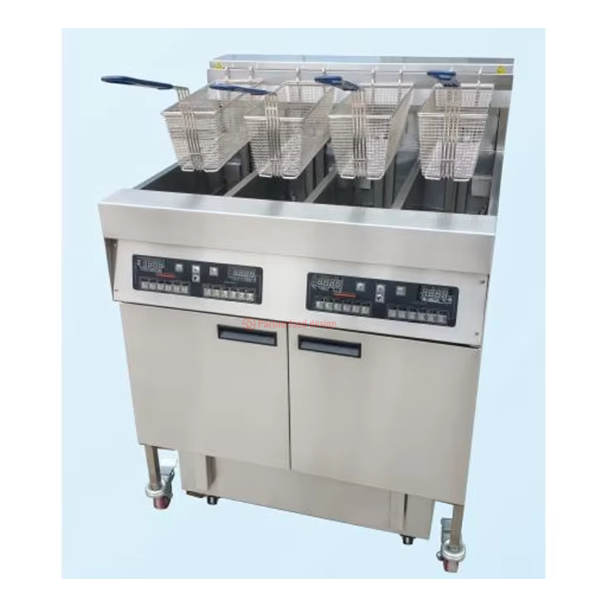 อุปกรณ์ KFC หม้อทอดไฟฟ้าแบบตั้งพื้น ร้านอาหารฟาสต์ฟู้ด 12 ช่อง; แผงควบคุมคอมพิวเตอร์ รถเข็นกรองน้ำมัน 4 ถัง ความจุ 56 ลิตร