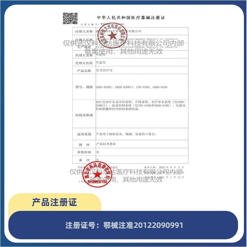 ใบรับรองการขึ้นทะเบียนเครื่องมือแพทย์หูเป่ย 20122090991