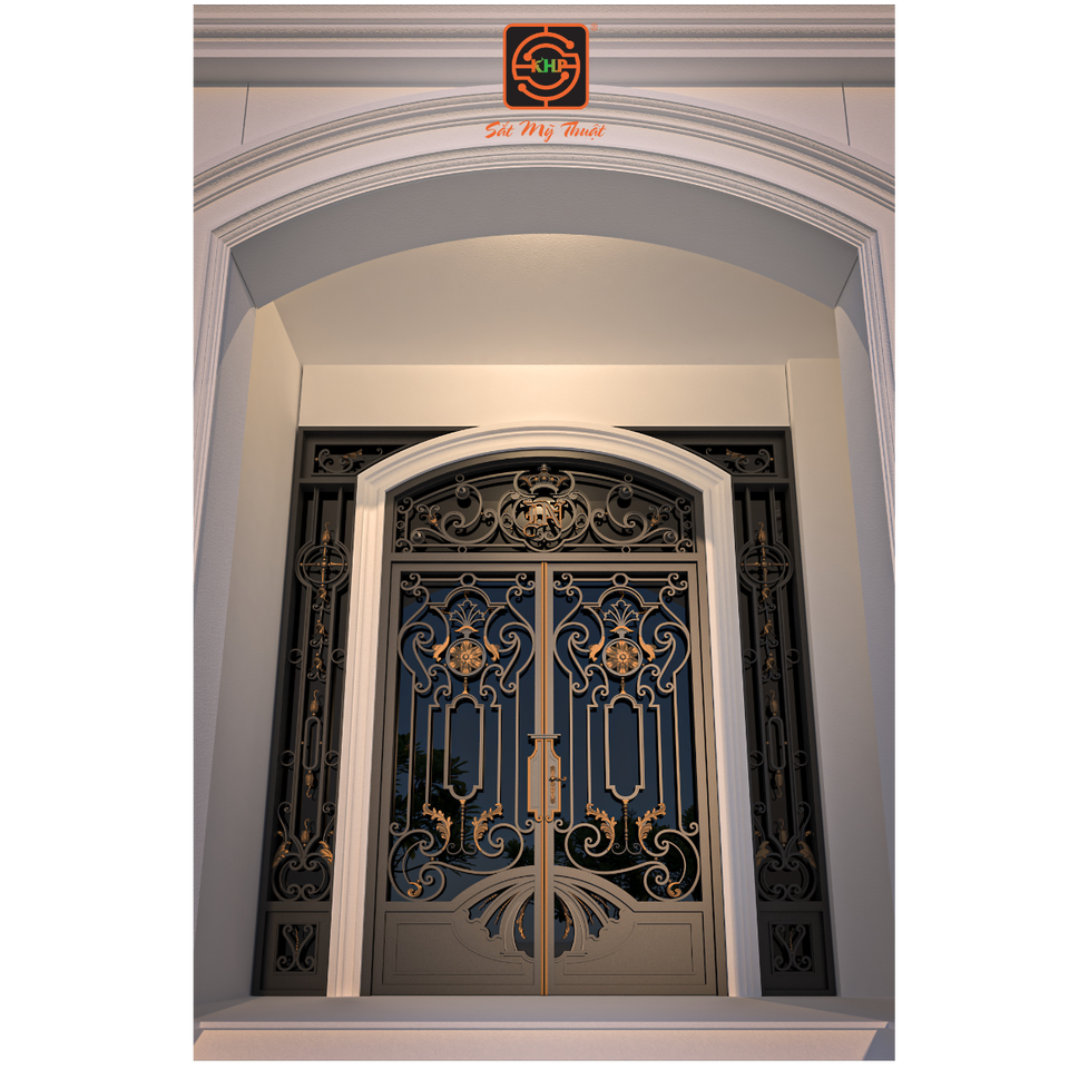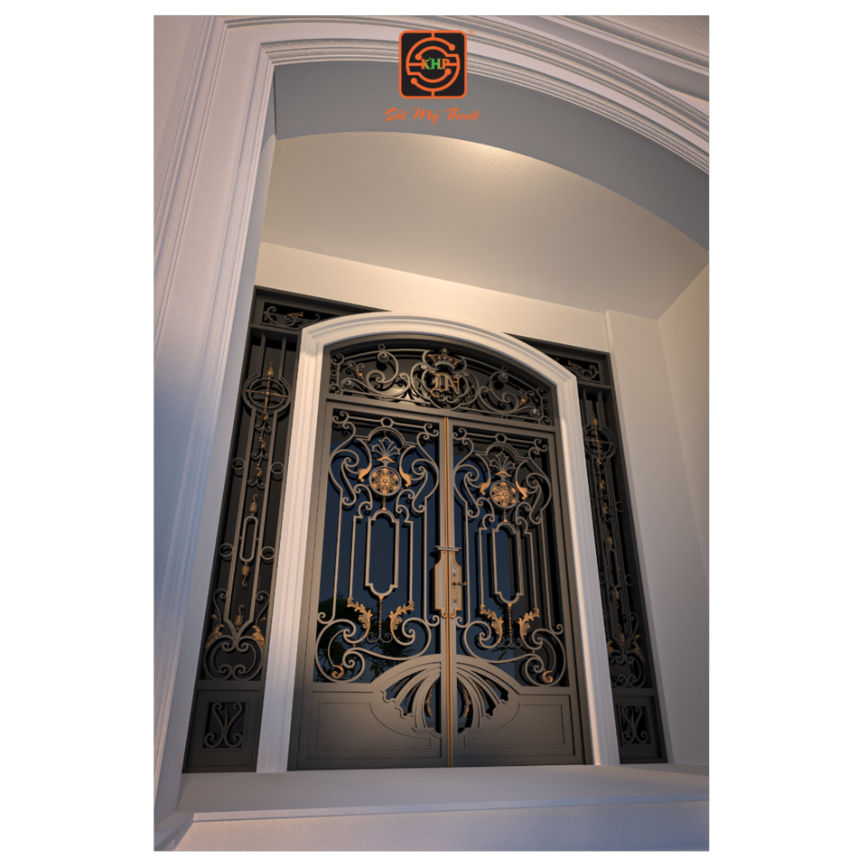 ประตูเหล็กดัด KHP แบบคู่ คุณภาพสูง งานตีขึ้นรูปด้วยมือ ดีไซน์หรูหรา สำหรับบ้านพักตากอากาศขนาดใหญ่และบ้านหรู