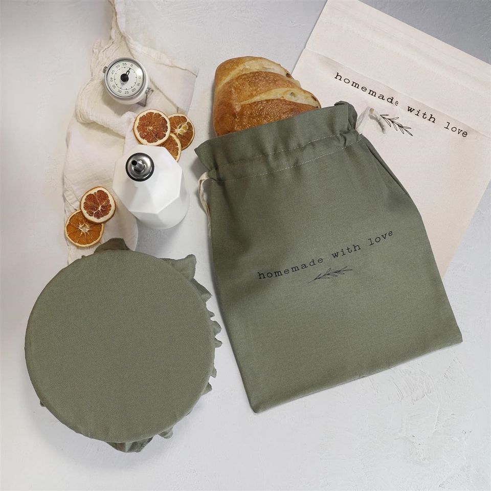 ชุดถุงผ้าลินินสวยงามสำหรับใส่ขนมปังและผ้าคลุมสำหรับพักแป้งทำขนมปังโฮมเมด - ช่วยรักษาขนมปังของคุณได้นานหลายวัน - ใช้ซ้ำได้ ง่ายต่อการใช้งาน