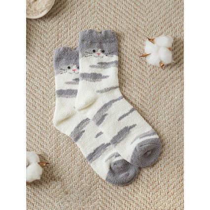 KIKYA Winter Cat Family Sleeping Socks One Size Nylon Breathable Warm with Custom Logo Cute Animal Jacquard Print for Girls
