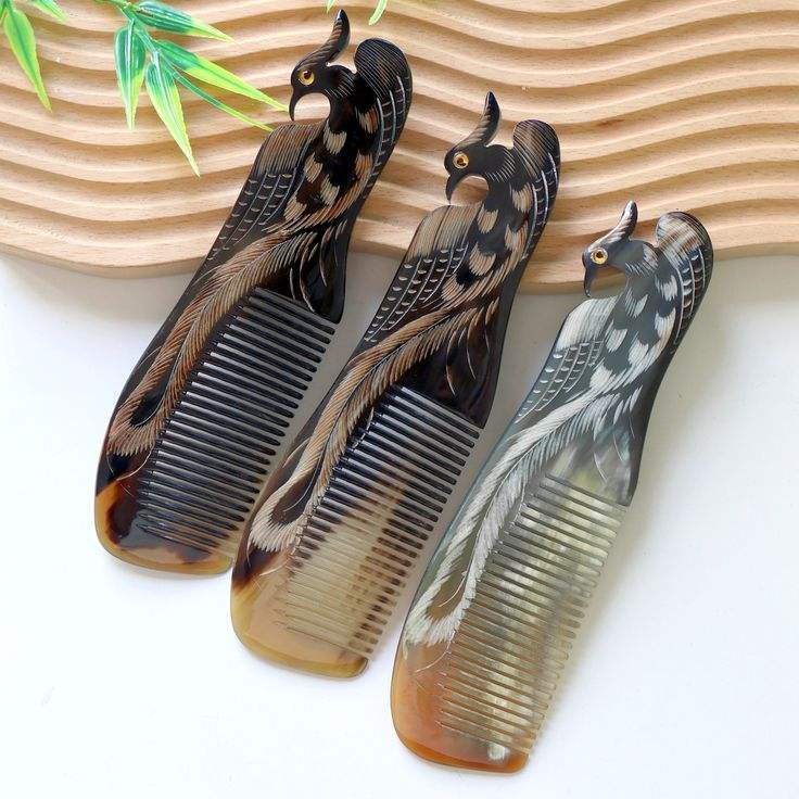 หวีฮอร์นแฮนด์เมดสำหรับจัดแต่งทรงผมตามธรรมชาติทำมือหวีซี่กว้างและละเอียด
