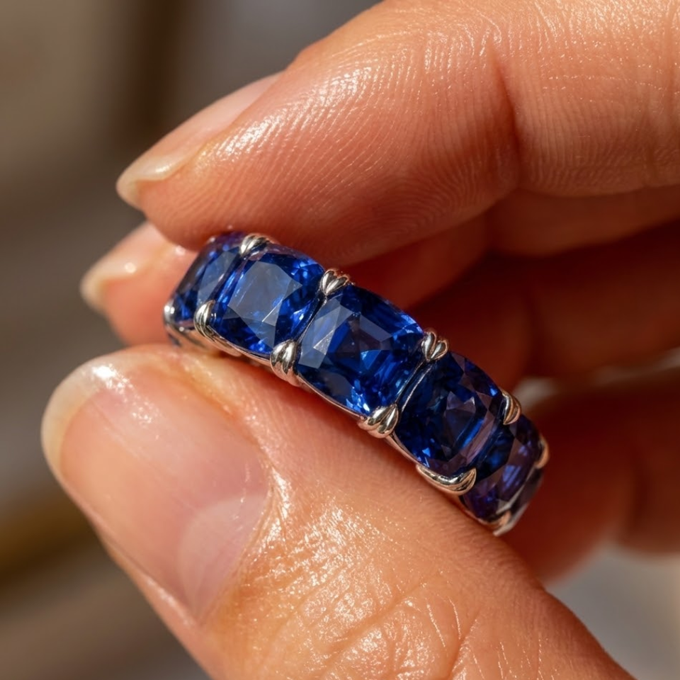 แหวนเพชรแซฟไฟร์ธรรมชาติขนาด18K ลายคิงส์โอคิงคลาสสิกสำหรับงานปาร์ตี้ในโอกาสต่างๆ