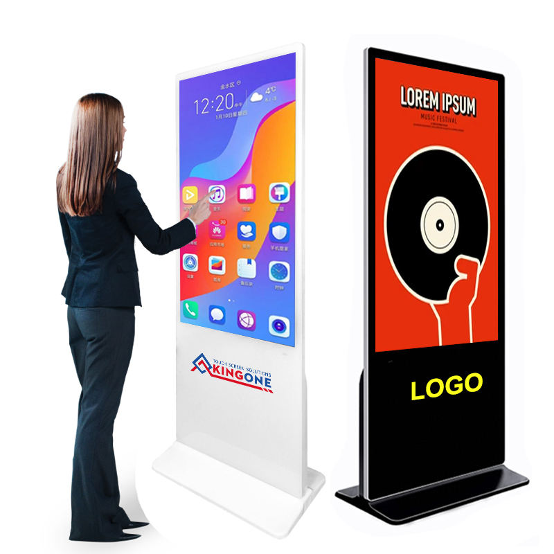 เครื่องเล่นโฆษณาแบบตั้งพื้นในอาคาร KINGOEN พร้อมหน้าจอสัมผัส LCD แสดงผลวิดีโอดิจิทัลแบบอินเทอร์แอคทีฟแนวตั้ง