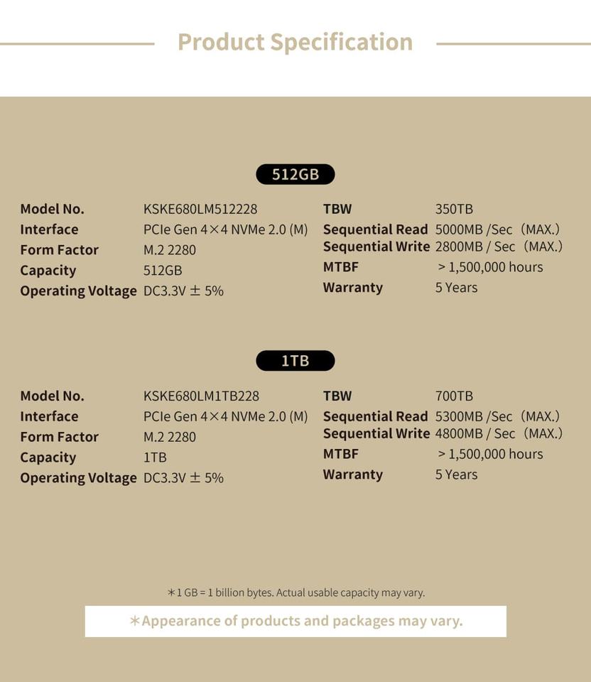 Interface:M.2 NVME2.0 PCIE 4X4 (M)
