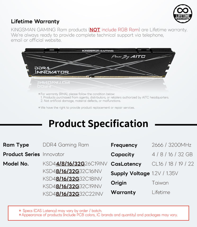 [KINGSMAN AITC] แรมประสิทธิภาพสูง DDR4 8GB 3200MHz สีดำ พร้อมแผ่นระบายความร้อนอะลูมิเนียม สำหรับเดสก์ท็อป รับประกันตลอดอายุการใช้งาน มีสินค้าในสต็อก