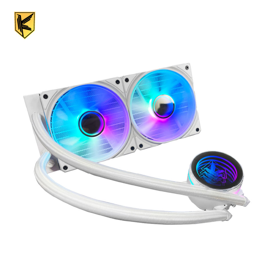 ชุดระบายความร้อนด้วยน้ำสำหรับซีพียู KINGSMAN KA-R240 ขนาด 240 มม. แบบ ARGB พร้อมตลับลูกปืนอะลูมิเนียม สำหรับเคสคอมพิวเตอร์เกมมิ่งสีขาว