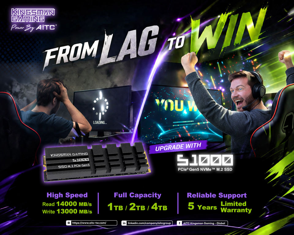 Kingsman S1000สำหรับเล่นเกม PCIe Gen5x4 M.2 2280 NVMe SSD 4TB เชลล์โลหะ14000เมกะไบต์/วินาทีอ่าน/13000เมกะไบต์/วินาทีเขียนเดสก์ท็อป5ปี