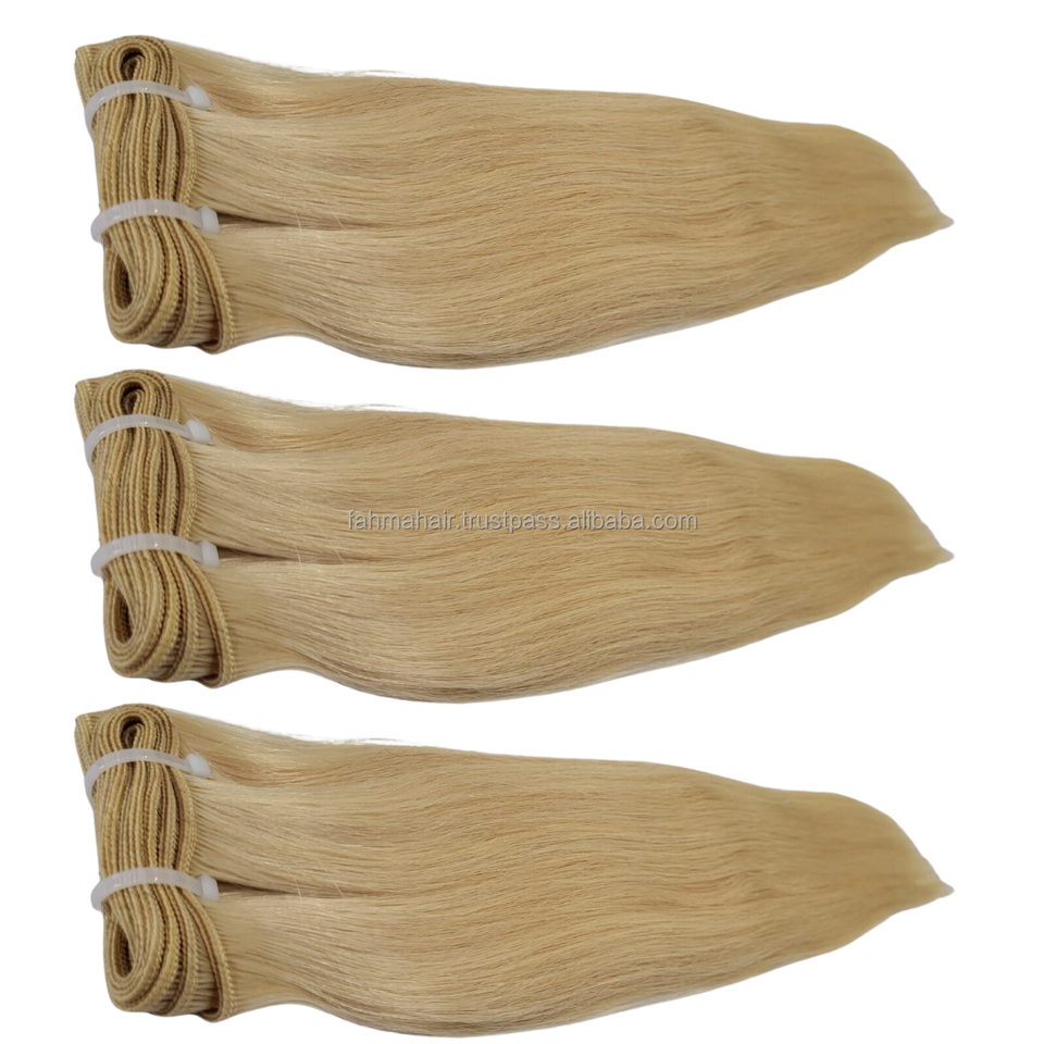 Kinmade ผมต่อ100% มนุษย์สีบลอนด์เรียงตามแนวหนังกำพร้าสำหรับเครื่องจักรย้อมสีผมตรงเงางามแบบสองชั้น