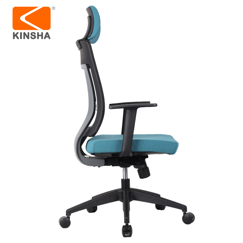 Kinsha เก้าอี้ห้องประชุมผู้บริหารปรับได้ทันสมัยเก้าอี้หมุนหลังสูงพร้อมพนักพิงศีรษะหนัง PU ตาข่ายโลหะผ้าโฟม