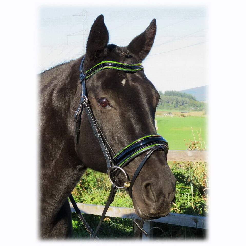KIWI GREEN คริสตัลท่อBLINGสิทธิบัตรม้าหนังSnaffleผู้ผลิตBridgeleกายวิภาคจานส้อมSnaffleหนังอินเดีย