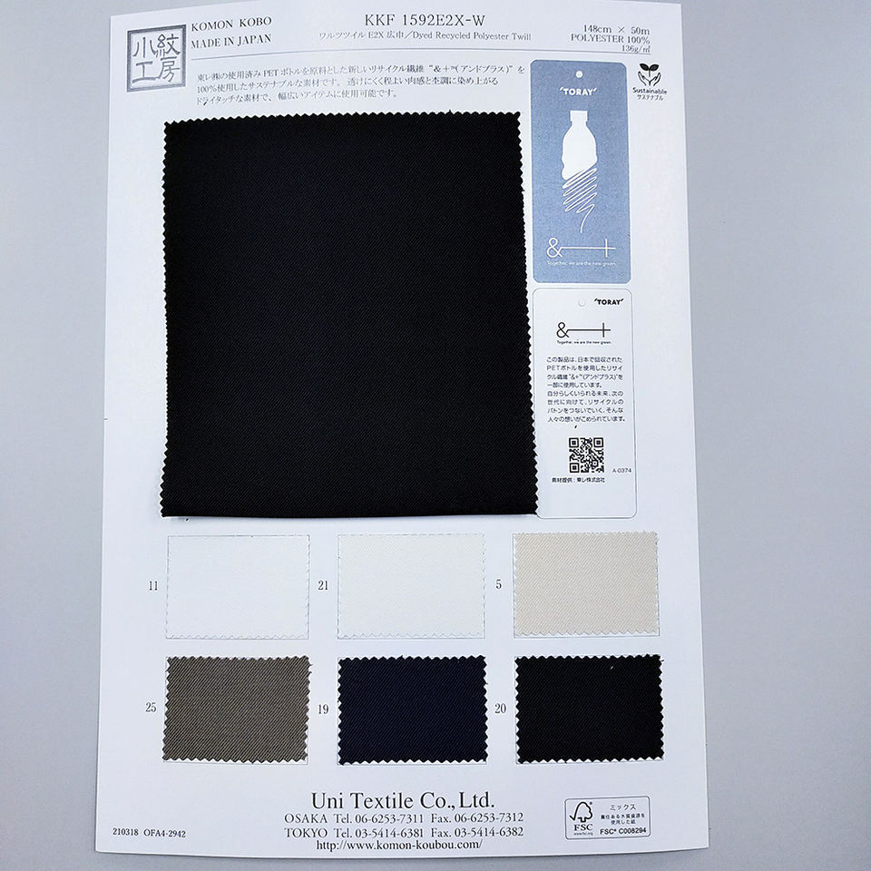 KKF1592E2X-W 100% โพลีเอสเตอร์สิ่งทอลายทแยงรีไซเคิลผ้าโพลีเอสเตอร์สำหรับเสื้อผ้าต่างๆ