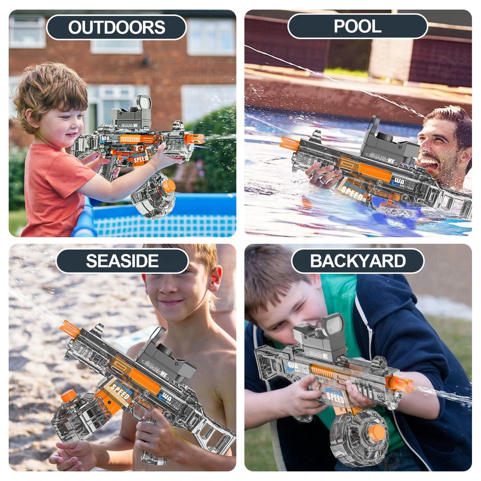 ปืนฉีดน้ำอัตโนมัติ KKNEW ขนาด 36 ซม. รุ่น UMP45 ปืนฉีดน้ำไฟฟ้า ดูดน้ำอัตโนมัติ ยิงต่อเนื่องได้ไกล 10 เมตร