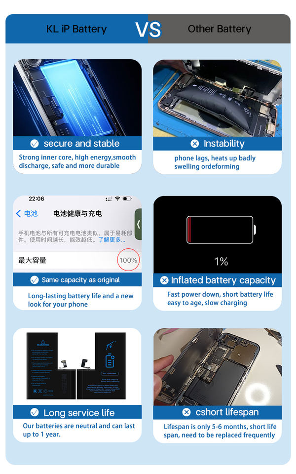 KL แบตเตอรี่ลิเธียมโพลิเมอร์แบบชาร์จไฟได้สำหรับ iPhone 12 13 14 15 PRO MAX