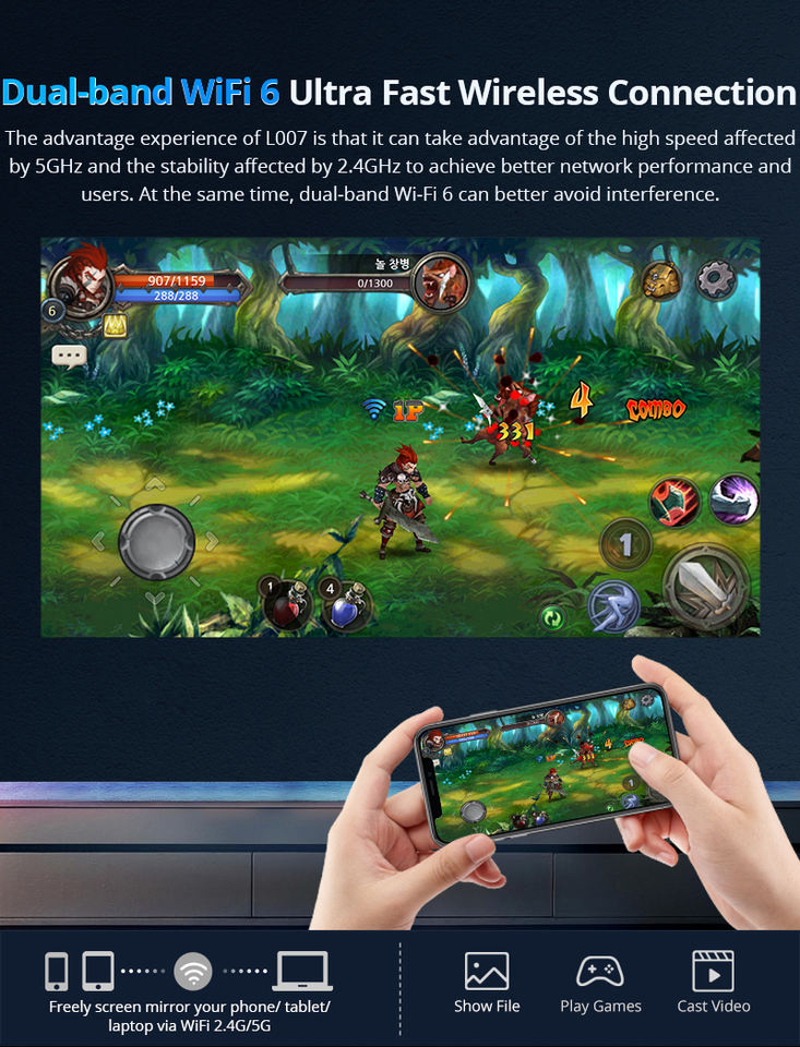 KL L007AQ 1080P LED Smart แอนดรอยด์11โปรเจคเตอร์วิดีโอแบบพกพาขนาดเล็กสำหรับห้องนอนดูหนังคืน