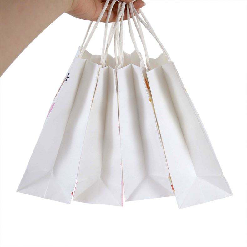 ถุงของขวัญกระดาษคราฟท์สีขาวลายยูนิคอร์น ผลิตในจีน ขายส่ง สำหรับงานวันเกิดเด็ก พร้อมหูหิ้ว