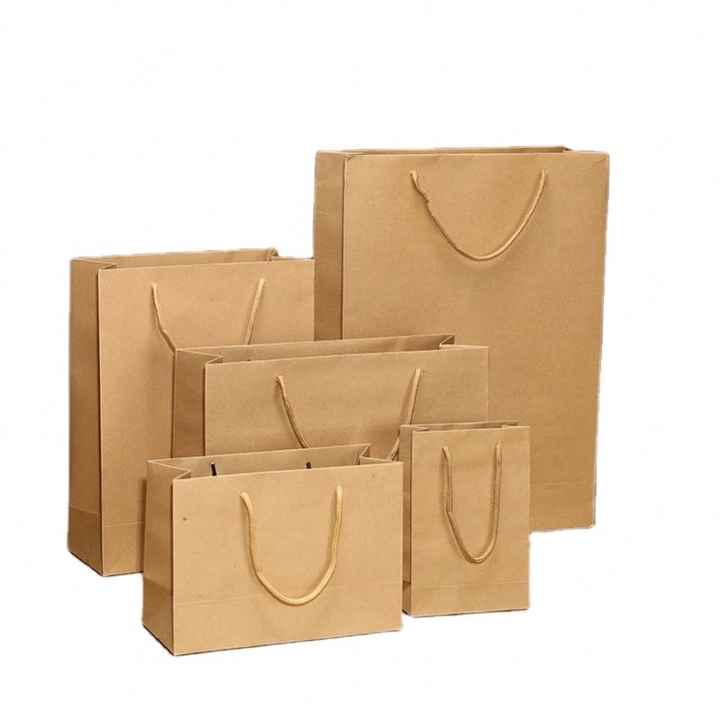 ถุงของขวัญกระดาษคราฟท์แบบใช้ซ้ำได้พร้อมหูหิ้วริบบิ้น KM Custom ราคาถูกจากจีน ขายส่งเครื่องประดับ Sacola Personalizada De Papel