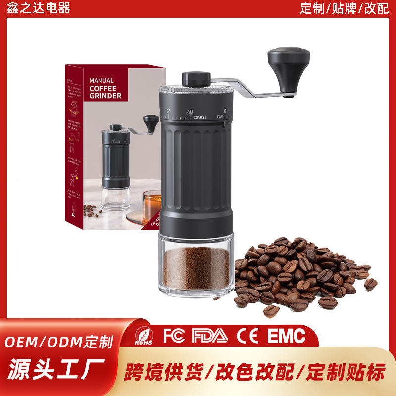 KMDJ เครื่องบดกาแฟแบบมือหมุน เครื่องบดกาแฟแบบแมนนวลสแตนเลสสำหรับใช้ในบ้านกลางแจ้ง 25-40 การตั้งค่า การออกแบบที่กะทัดรัด