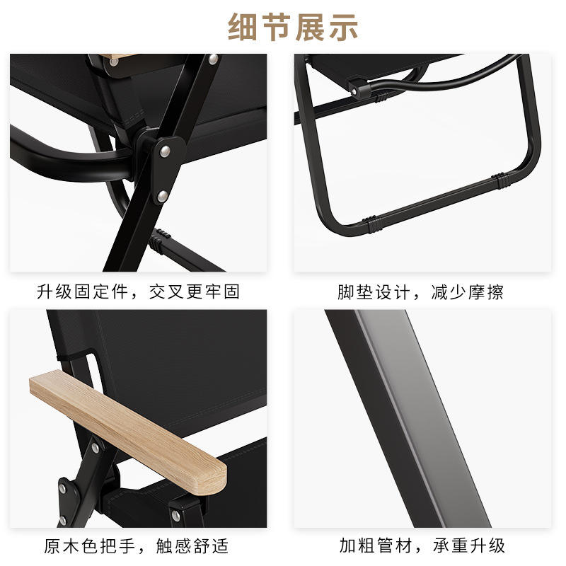 KMTY เก้าอี้พับกลางแจ้ง เก้าอี้สนามพับได้แบบพกพา สไตล์ลำลอง สีดำและสีเบจ