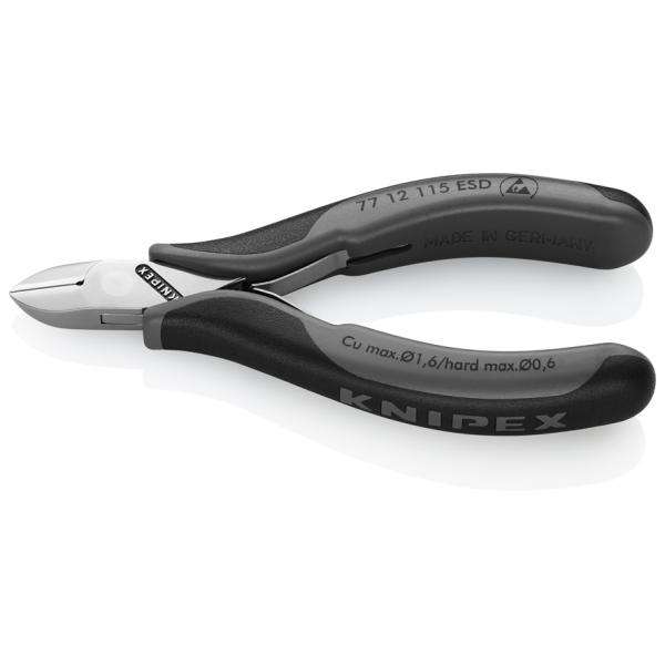 Knipex-77 12 115 ESD อิเล็กทรอนิกส์ทแยงมุมตัดกระจกหัวขัด, จับกับหลายองค์ประกอบ, หัวกลม