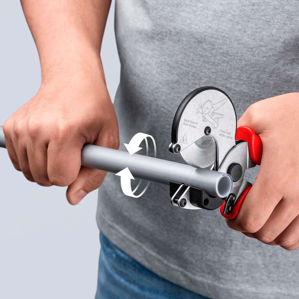 Knipex 90 25 25สำหรับท่อคอมโพสิตและพลาสติกที่มีที่จับหลายองค์ประกอบชุบโครเมี่ยม210มม