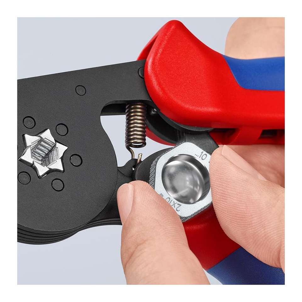Knipex 97 53 14 SB คีมจีบปรับตัวเองสำหรับปลอกโลหะลวดที่มีการเข้าถึงด้านข้างพร้อมที่จับหลายองค์ประกอบ180ขัดเงา