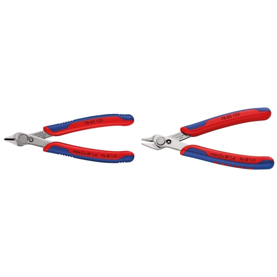 คีมตัดสายไฟ KNIPEX รุ่น Praezisionszange, Electronic-Super-Knips, ขนาด 125 มม., 78 03 125 ( 9859504166 )