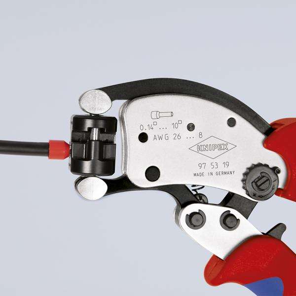 Knipex-97 53 19 SB twistor®T คีมย้ำสายไฟแบบปรับได้ด้วยตัวเองสำหรับหัวโลหะแบบหมุนได้