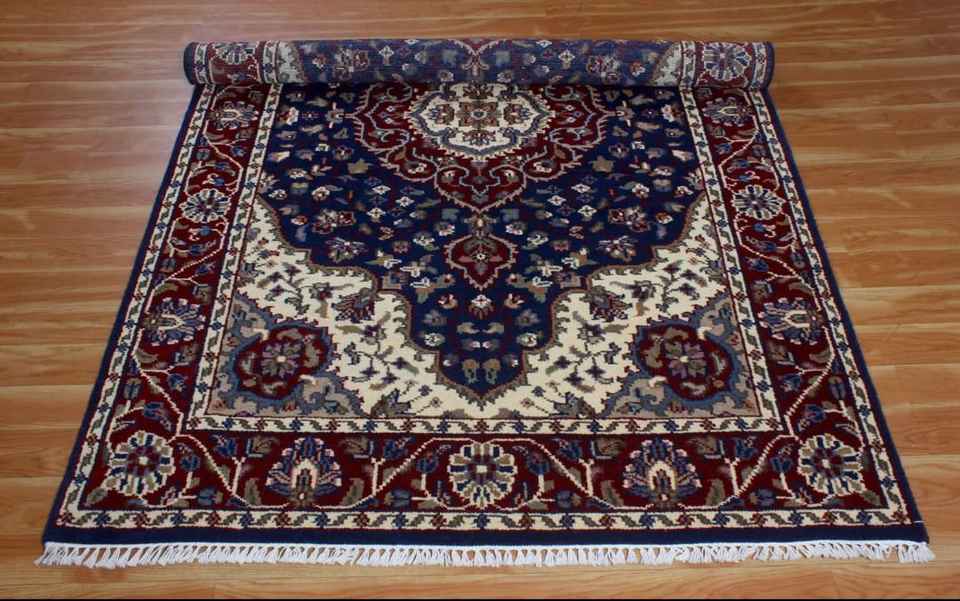 พรมปูพื้นแบบผูกปม สีฟ้าแบบตุรกี พรมขนสัตว์เปอร์เซียทอมือ สำหรับห้องนอน โรงแรม ร้านอาหาร พรมปักลาย