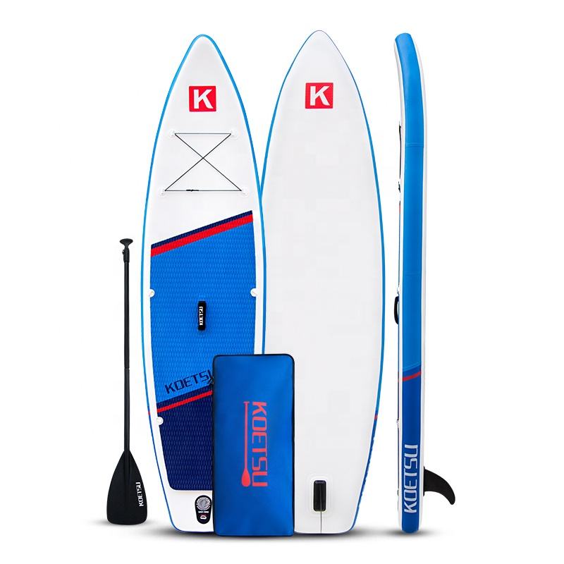 กระดานแพดเดิลบอร์ดแบบเป่าลม KOETSU สองชั้น หนาพิเศษ สำหรับเล่นในทะเล สีขาว+น้ำเงิน รับน้ำหนักได้สูงสุด 200 กก.