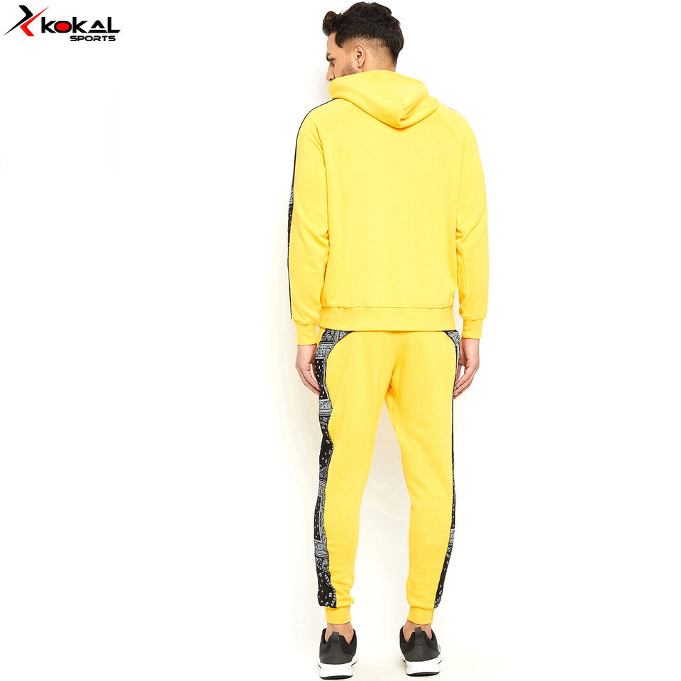 Kokal ชุดกีฬาสำหรับผู้ชายชุดวอร์มสีเหลืองพื้นใส่สบายชุดออกกำลังกายสำหรับผู้ชาย