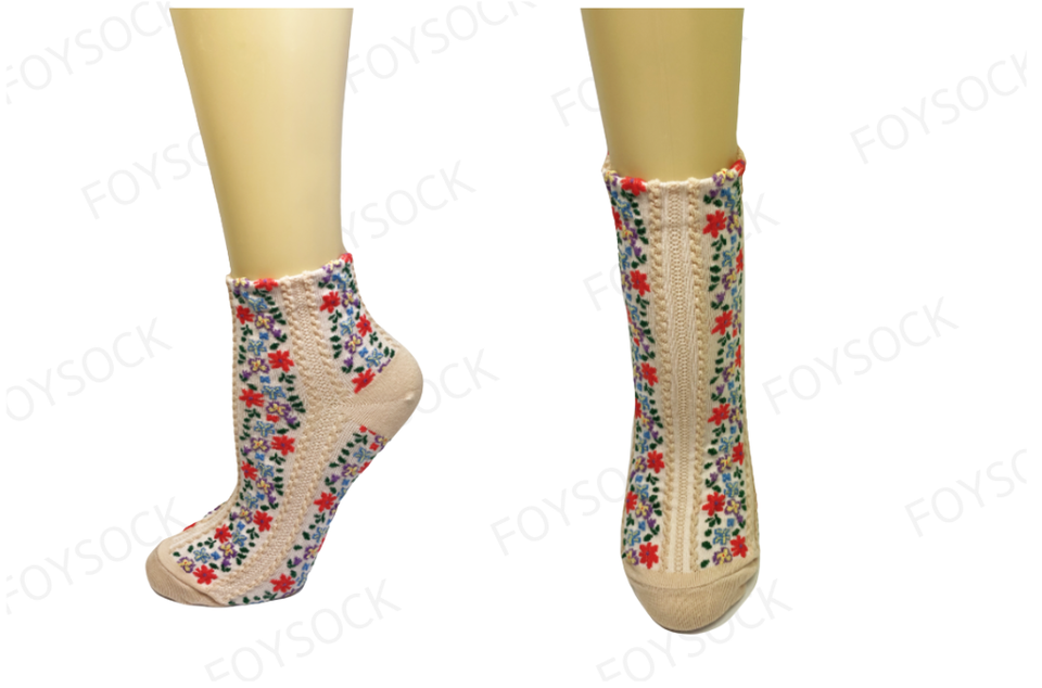ถุงเท้าถักลายดอกไม้สองเส้น foysock