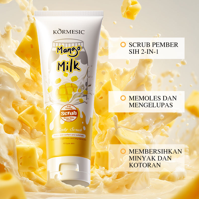 Kormesic 200g อินโดนีเซีย bpom ได้รับการรับรองแล้วว่าเนื้อนุ่มขัดผิวบอบบางทำให้ผิวกระจ่างใสเพิ่มความหยาบกร้านผิวด้วยนมมะม่วง