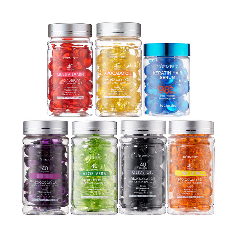 เซรั่มบำรุงเส้นผม KORMESIC 40 มล. สูตรวิตามินอี ช่วยให้ผมเรียบลื่น ชุ่มชื้น ผลิตภัณฑ์สำหรับแบรนด์ส่วนตัว ผสมน้ำมันโมร็อกโก ว่านหางจระเข้ น้ำมันมะกอก และเคราติน