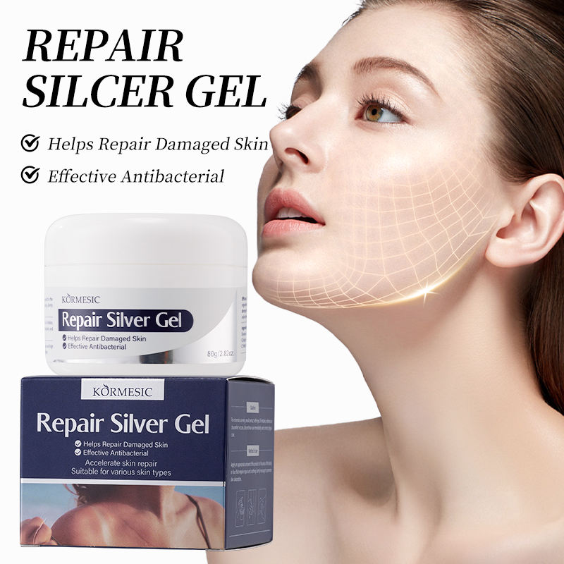 ครีมบำรุงผิวหน้า KORMESIC 80 กรัม ขายส่ง ช่วยยกกระชับ ลดเลือนริ้วรอย ผิวกระจ่างใส ชุ่มชื้น ฟื้นฟูผิว ด้วยสารสกัดจากใบบัวบกและไนอะซินาไมด์ เจลสีเงิน