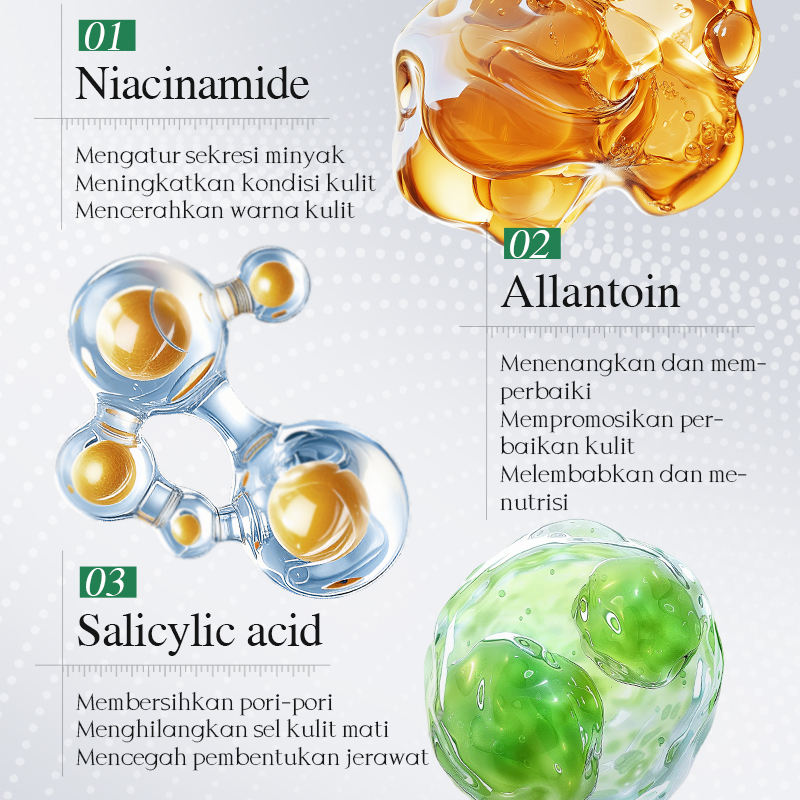 กรดซาลิไซลิก, อัลลันโทอิน, ใบบัวบก, แฮมามีลิส เวอร์จิเนีย, กลีเซอรีน, อินทรีย์, ไนอะซินาไมด์