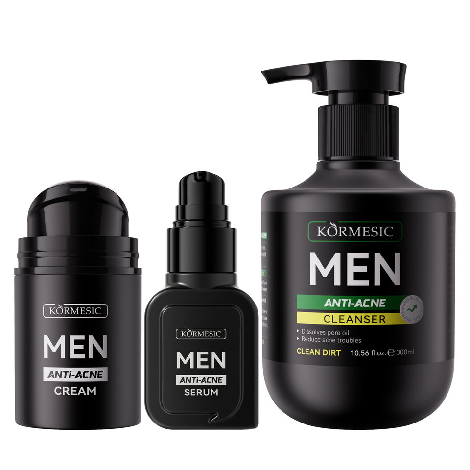 ชุดผลิตภัณฑ์ดูแลผิวหน้าสำหรับผู้ชาย KORMESIC ช่วยทำความสะอาด ปรับผิวกระจ่างใส ซ่อมแซมผิว ควบคุมความมัน ลดสิว ประกอบด้วยครีมและโฟมล้างหน้า พร้อมไนอะซินาไมด์เอสเซนส์