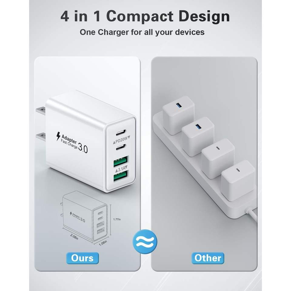 2-Pack 40W 4-Port USB C Charger Block (White)Included Components